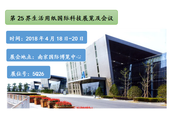 第二十五界生活用紙國際展覽及會(huì)議(2018年生活用紙年會(huì)暨婦嬰童、老人衛(wèi)生用品展會(huì))將于2018年4月18日-20日在南京國際博覽中心盛大召開。